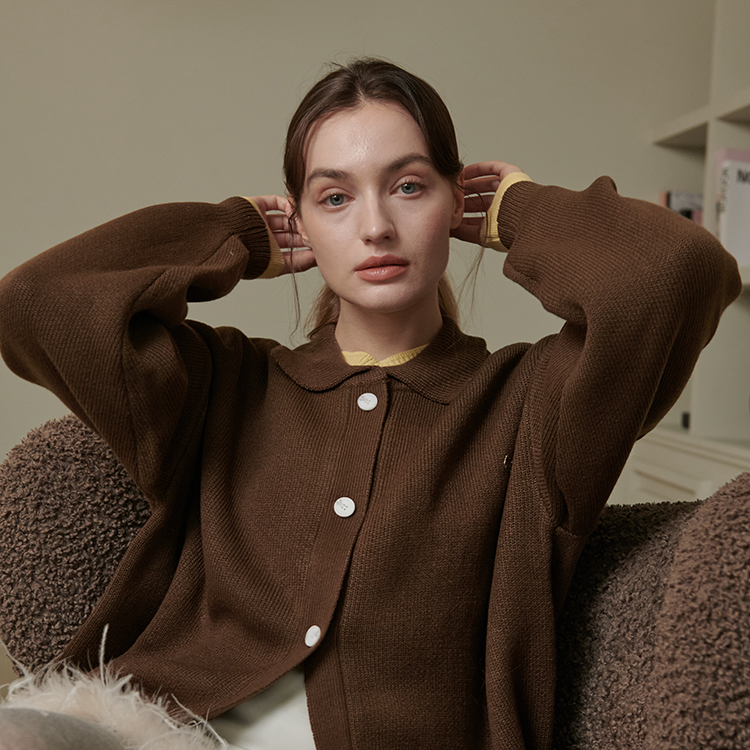 노워시 오버핏 카라 가디건_브라운